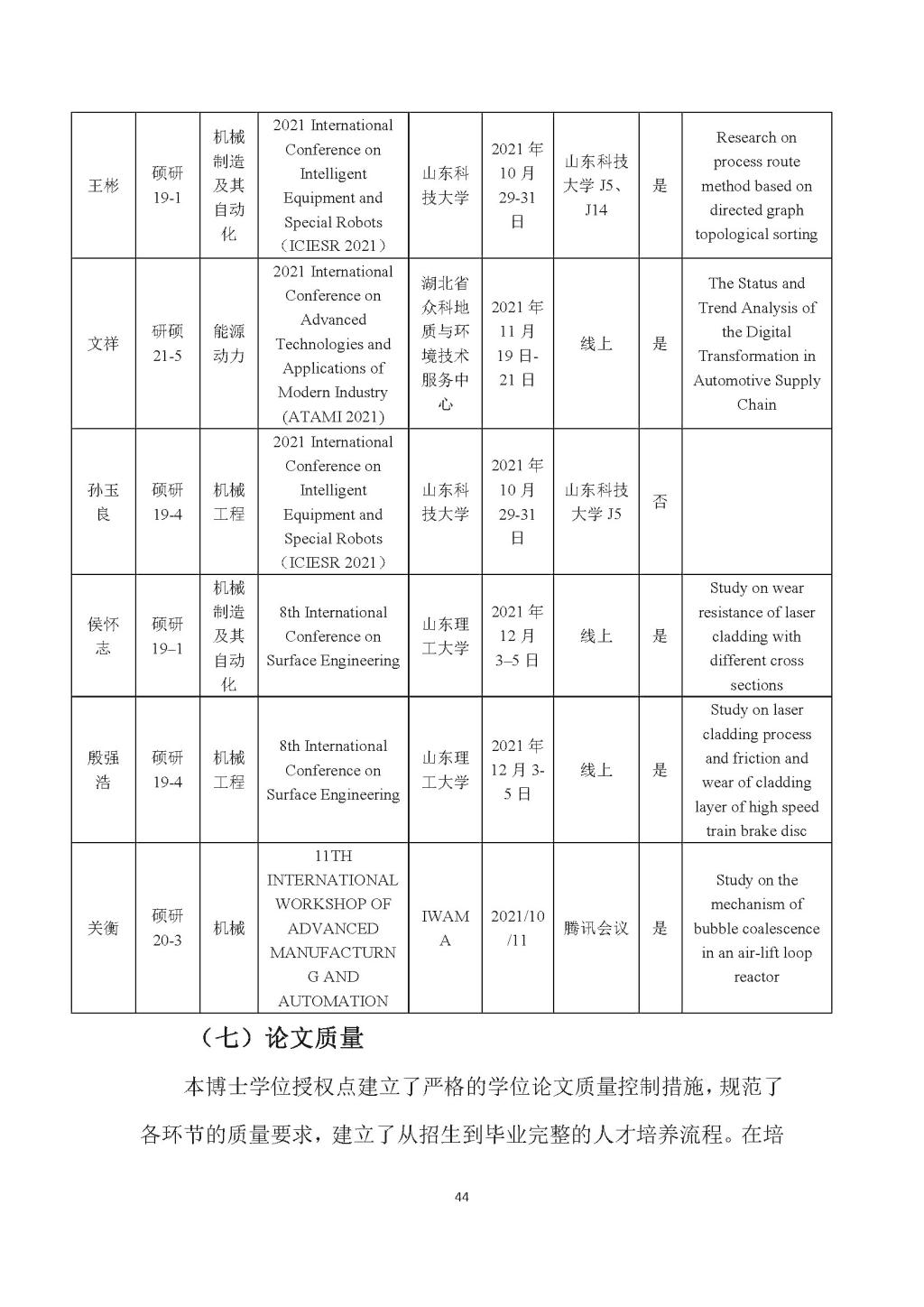 机械工程一级学科博士学位授权点2021年建设年度报告